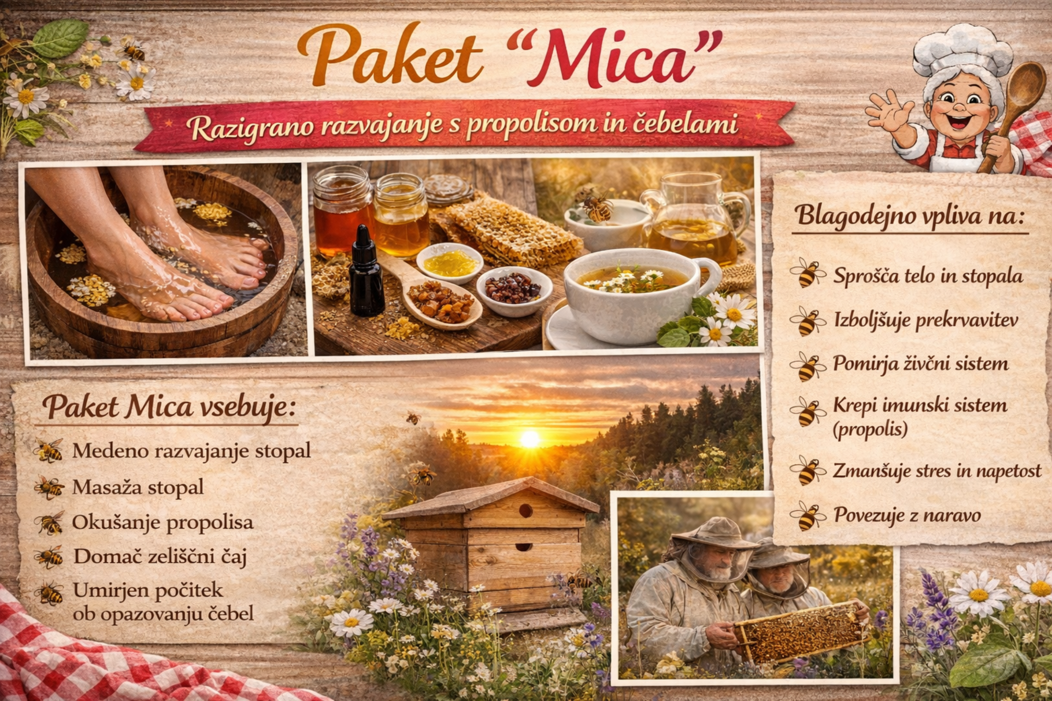 Na Mihovi domačiji se čebelari že generacije. Med vojno so domačijo požgali, pošto pa skrivali v čebelnjaku, ker so vedeli, da bo tam na varnem. V novem cvetličnem čebelnjaku je še danes ohranjen panj iz tistega časa.